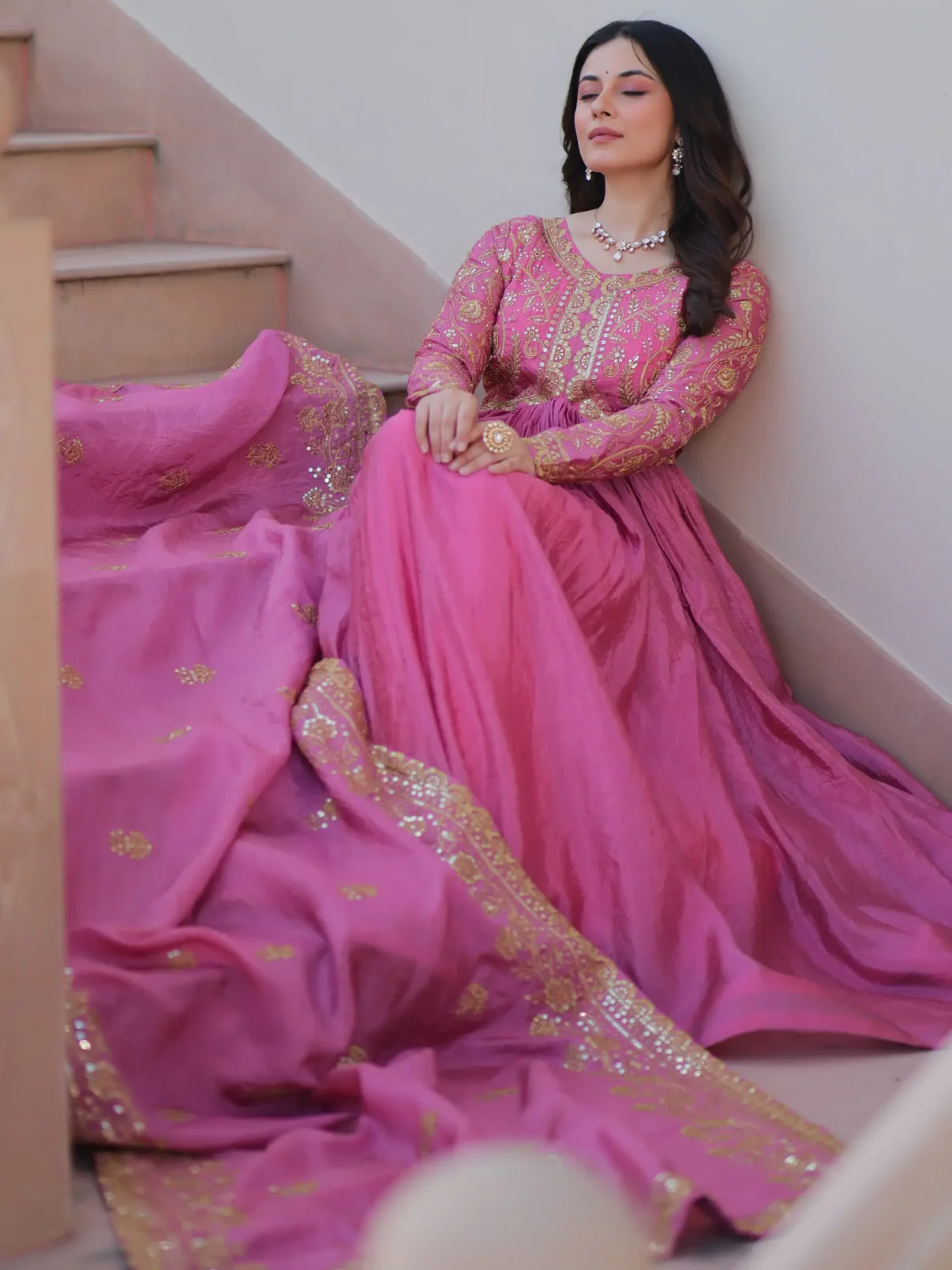 Be the first to review “Sweet Baby Pink Sequins Organza Party Wear Gown With Dupatta”